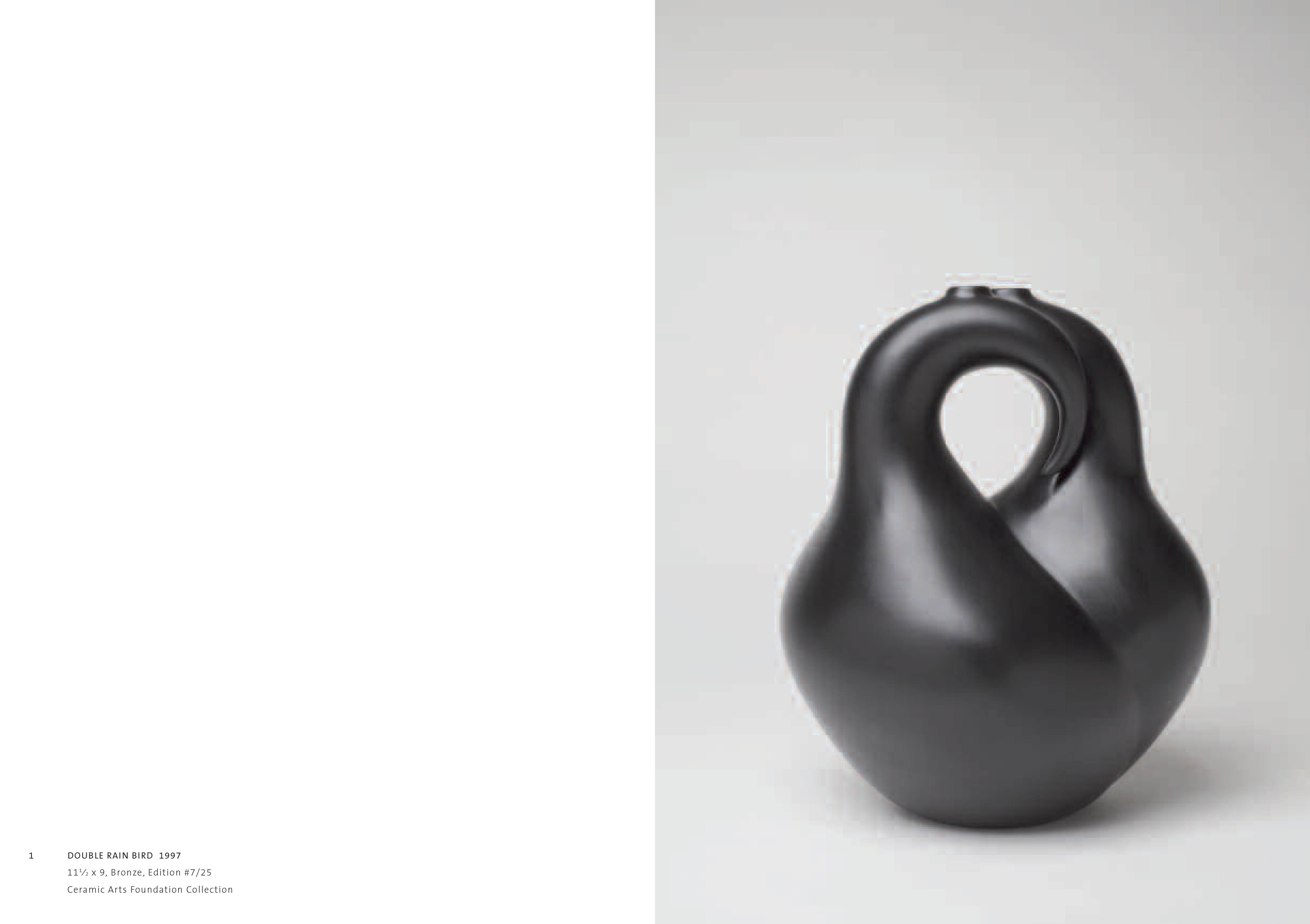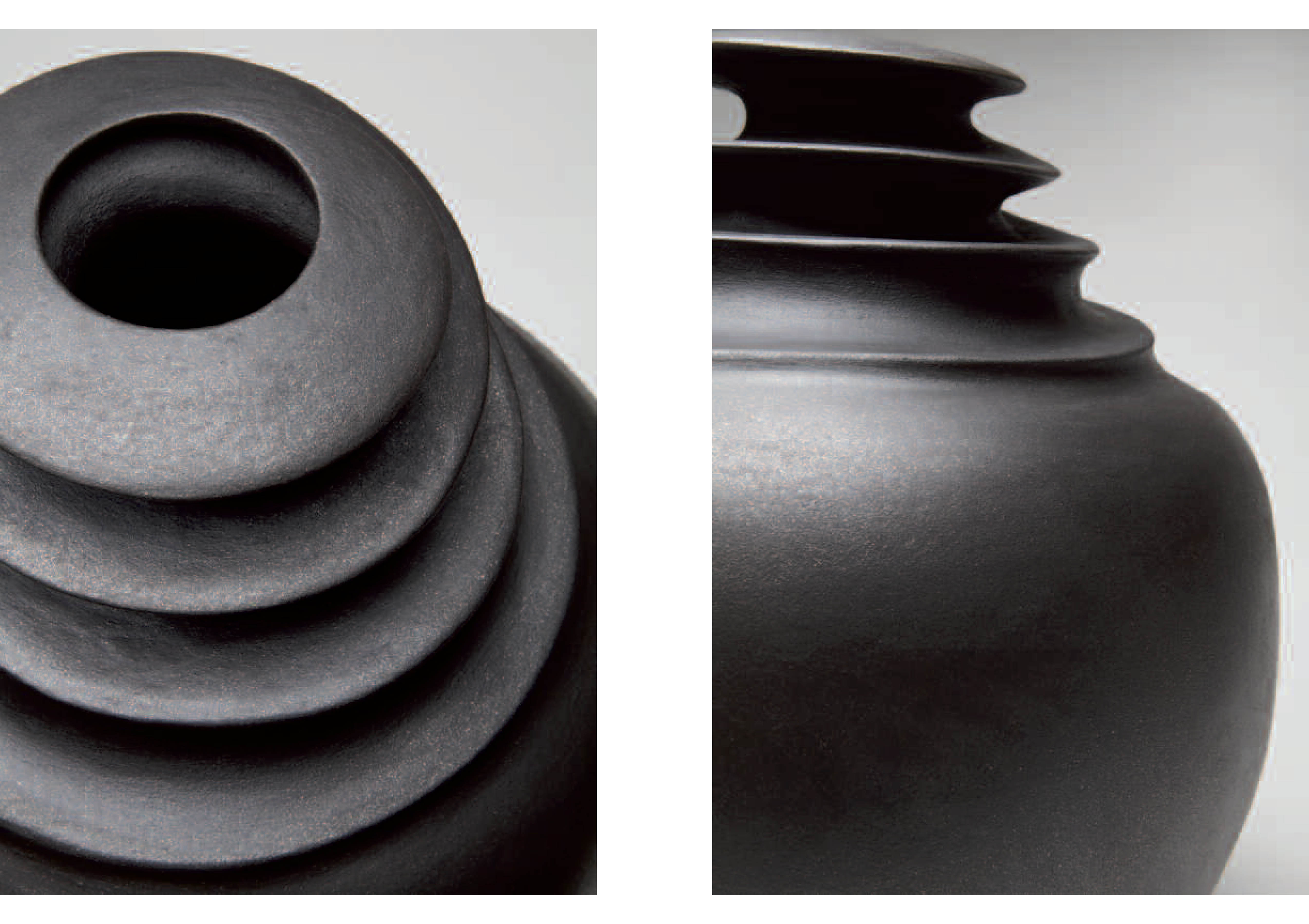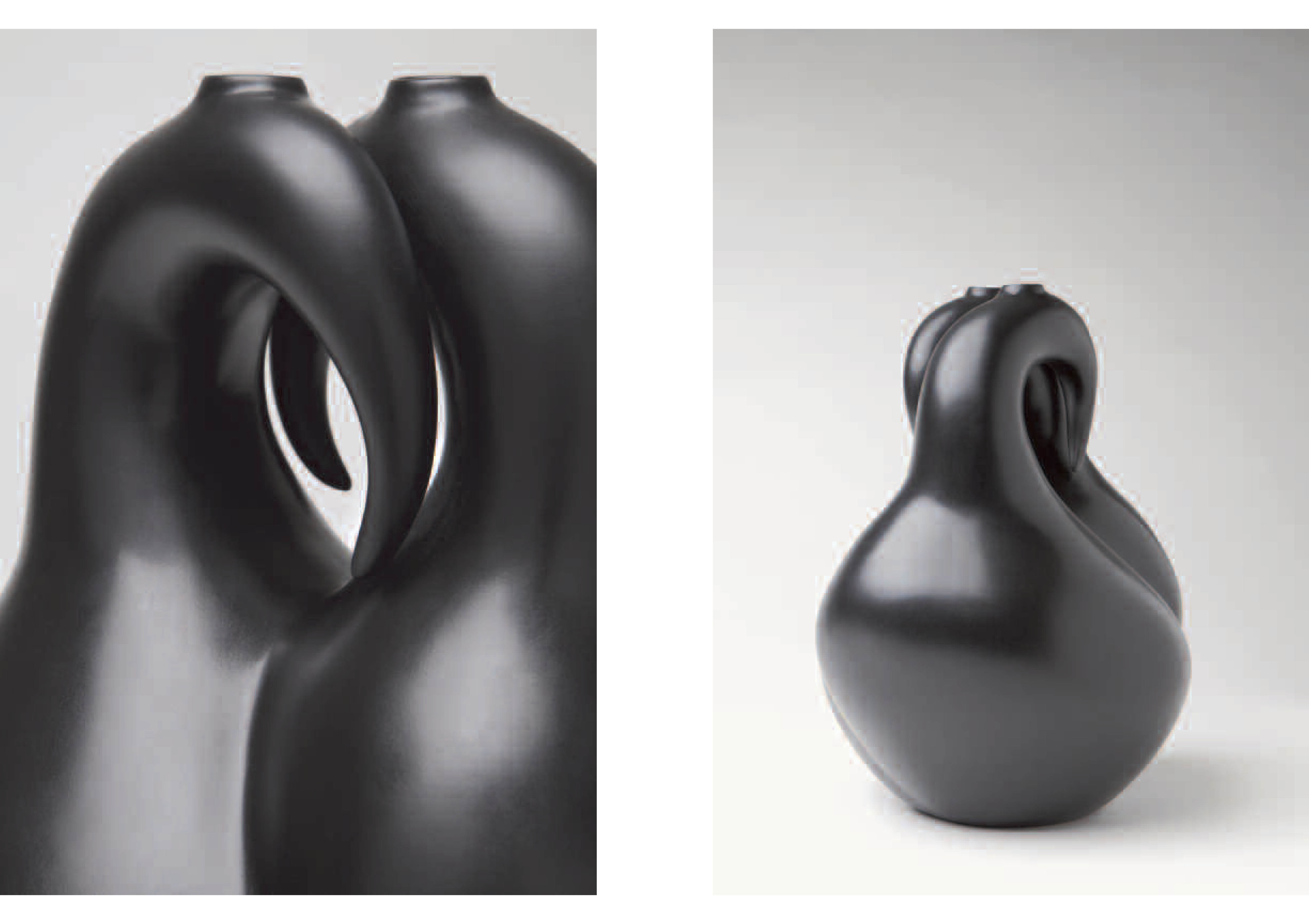 Dark Light refers to the mica-rich clay McHorse uses in her vessels. When fired, the mica glows and shimmers against the black of the reduction-fired surfaces, advancing and receding, giving McHorse’s elegant, matt-black biomorphic shapes a retinal vibrance and a sensual life.