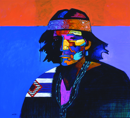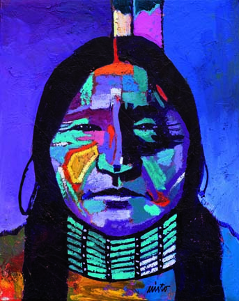 Nieto depicts Native peoples as icons of dignity and unity. His buffalo, bears, and coyotes are symbols of survival. Each is captured in pulsating saturated hues that affirm the vibrant spirituality inherent in all living things.