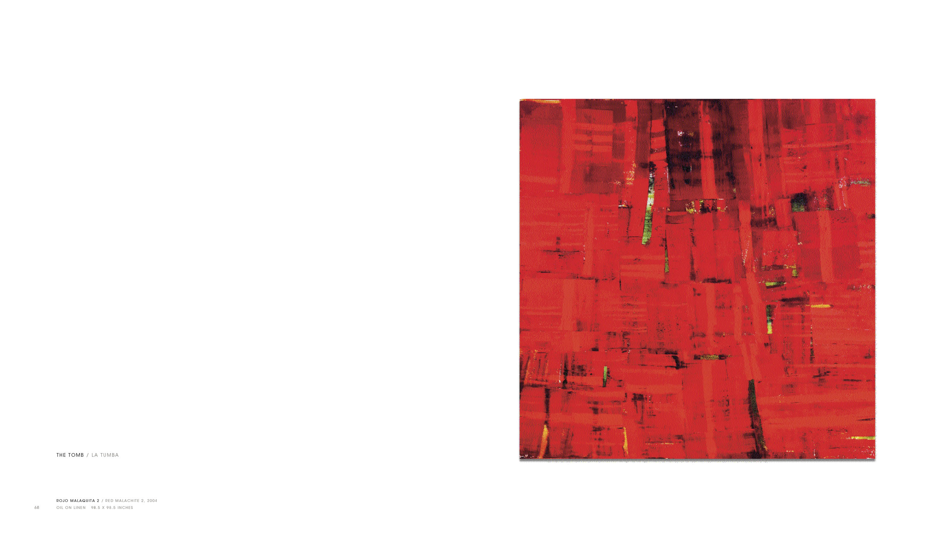 Over the last few years Mazal has devised an innovative means of developing his compositions, by photographing existing works and using the computer to carry out a series of digital manipulations that allow him to visualize “virtual” paintings that are later translated to the canvas. Because the Red Queen series was so directly rooted in a concrete subject, Mazal began this body of work by extensively photographing the site’s temples, stones, and surrounding landscape. These images became the basis for abstract works that reflect a creative dialogue between digital technology and traditional painting modes. In color photographs, monotypes, and monumentally scaled paintings, Mazal eloquently interprets the myriad themes evoked by this Maya noblewoman and her tomb – history and time’s passage, spirituality, nature and culture, and human mortality.