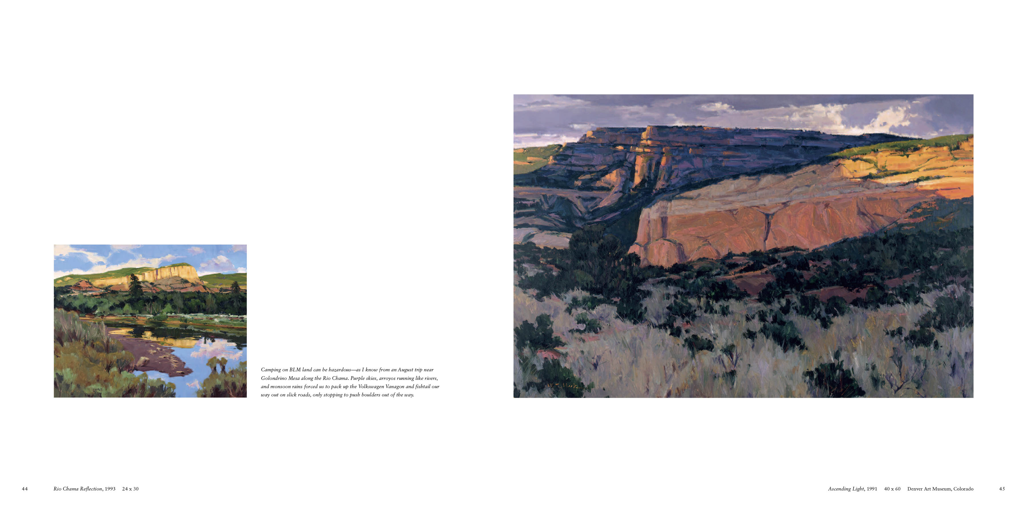 For three decades, the signature “W. C. Hook” has connoted dynamic design, saturated color, and muscular brushwork. William Cather Hook’s ability to straddle the border between pictorial illusion and pure paint, between traditional yet modern, has won him collectors worldwide. Less well-known about this master of acrylics is the breadth of his subject matter. In this retrospective of paintings dating from the early 1980s to the present Hook guides the reader on a journey that includes the back roads of northern New Mexico, the high country of the Colorado Rockies and Sangre de Cristos, California’s Pacific coastline and central valley, the reaches of the Sonoran Desert, and historic vistas in England and Italy. Whether depicting crashing surf, aspen forests, or luminous big skies, Hook’s vision is inviting, vibrant, and infused with radiant light. Also explored is the artist’s biography, from his Kansas roots to his current studios in Santa Fe, New Mexico, and Carmel, California.