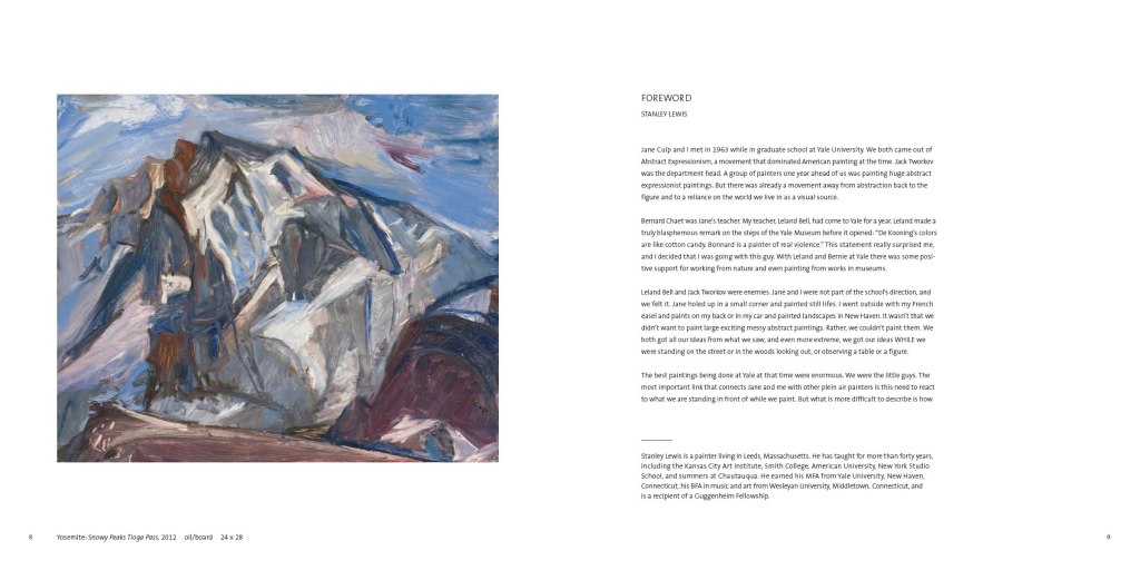 Jane Culp’s muscular paintings and drawings make palpable the rush she feels when on location interacting with nature. From her modernist perspective she conveys a powerful sense of the moment using surface tension and movement. “I’m interested in the life and language of form,” she explains. “How form talks as it goes into space, how light and distance swallow and selectively magnify the forms, how a rhythmic movement in space releases forms that change direction, split, bulge, and fall back into space.” Working in harsh weather conditions that force her to strap her easel to her knees, Culp explores wilderness terrain along the spine of the Sierra Nevada, transporting viewers from her home base north of the Anza-Borrego Desert, through Joshua Tree and Death Valley national parks, up to Tioga Pass, and into Yosemite Valley.
